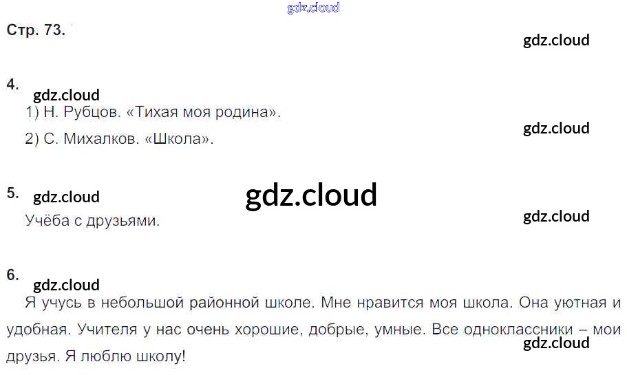 Ответ на задание стр.73 Рабочая тетрадь Литература за 4 (четвертый) класс Ефросинина Начальная школа XXI века 2020 Часть 1, 2