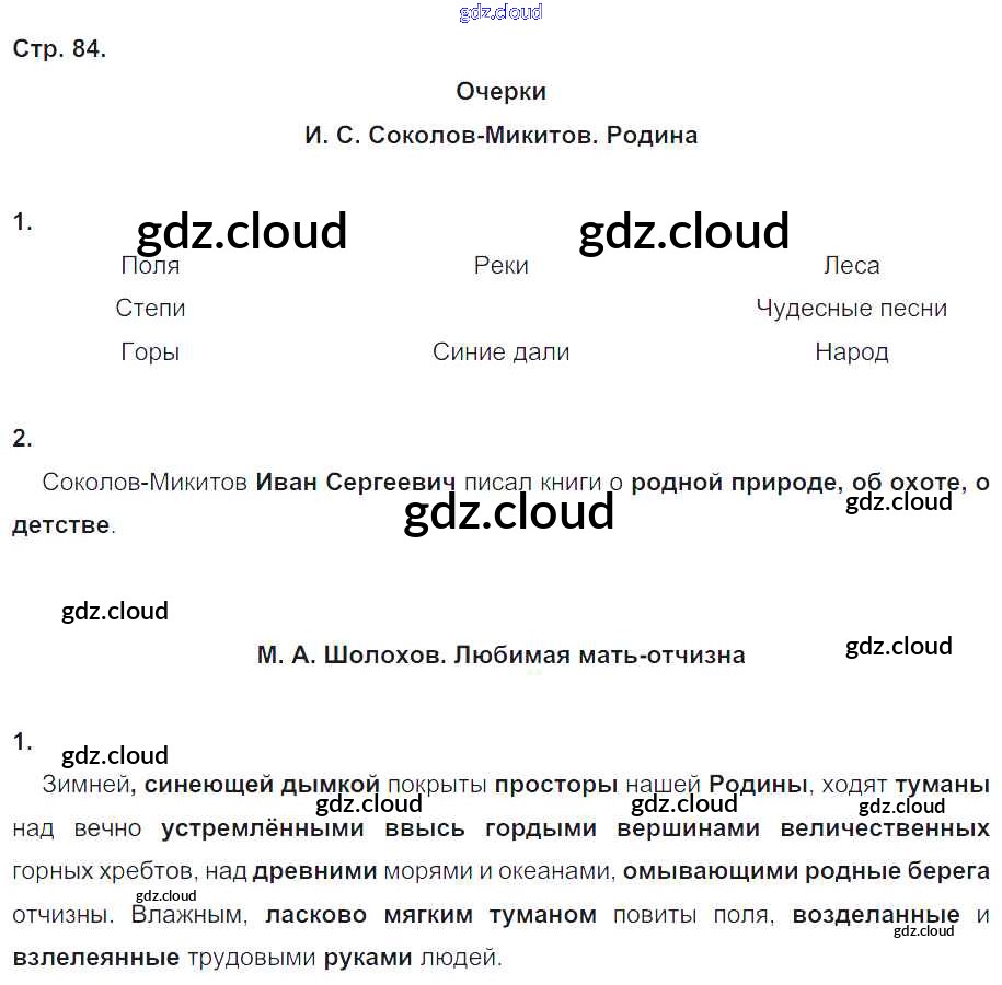 Ответ на задание стр.84 Рабочая тетрадь Литература за 4 (четвертый) класс Ефросинина Начальная школа XXI века 2020 Часть 1, 2