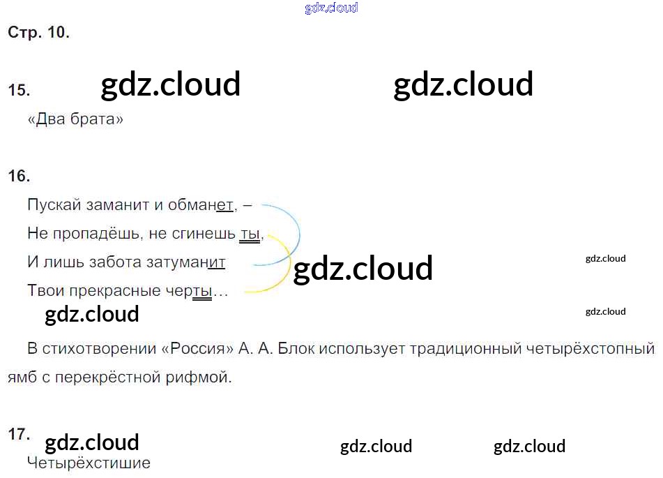 Ответ на задание стр.10 Тетрадь для контрольных работ Литература за 4 (четвертый) класс Ефросинина УМК 2019 Часть 1, 2