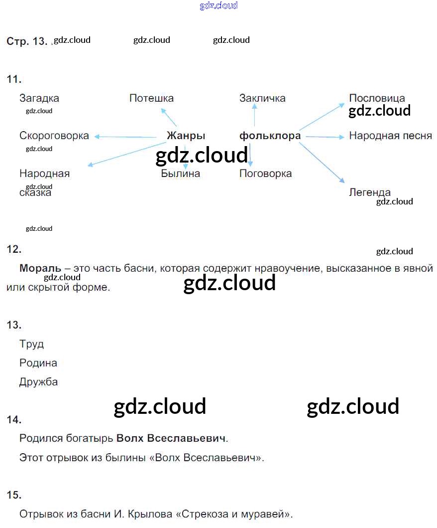 Ответ на задание стр.13 Тетрадь для контрольных работ Литература за 4 (четвертый) класс Ефросинина УМК 2019 Часть 1, 2