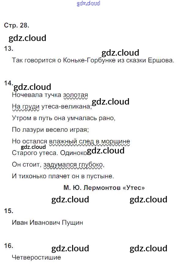 Ответ на задание стр.28 Тетрадь для контрольных работ Литература за 4 (четвертый) класс Ефросинина УМК 2019 Часть 1, 2
