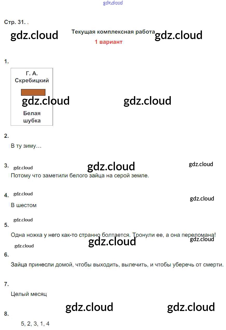 Ответ на задание стр.31 Тетрадь для контрольных работ Литература за 4 (четвертый) класс Ефросинина УМК 2019 Часть 1, 2