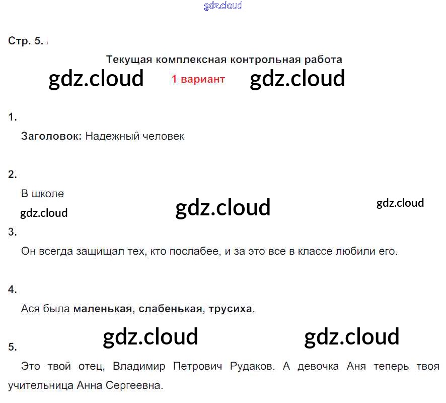 Ответ на задание стр.5 Тетрадь для контрольных работ Литература за 4 (четвертый) класс Ефросинина УМК 2019 Часть 1, 2