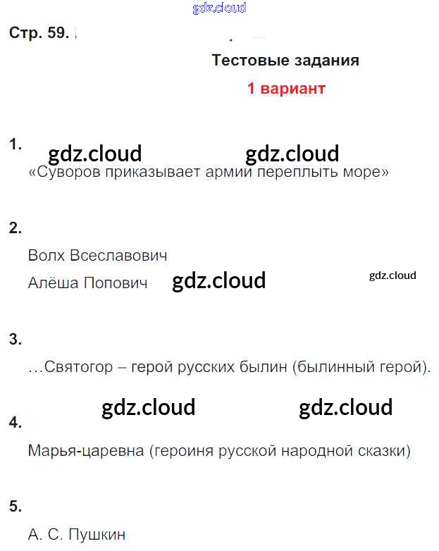 Ответ на задание стр.59 Тетрадь для контрольных работ Литература за 4 (четвертый) класс Ефросинина УМК 2019 Часть 1, 2