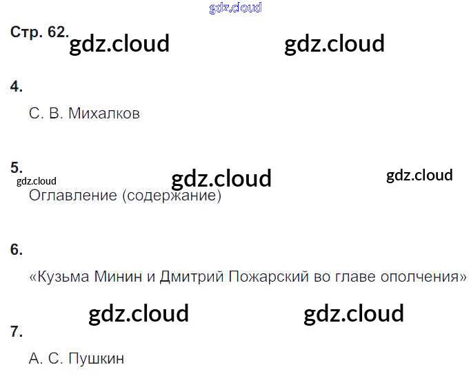 Ответ на задание стр.62 Тетрадь для контрольных работ Литература за 4 (четвертый) класс Ефросинина УМК 2019 Часть 1, 2