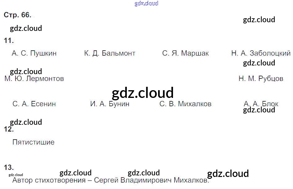 Ответ на задание стр.66 Тетрадь для контрольных работ Литература за 4 (четвертый) класс Ефросинина УМК 2019 Часть 1, 2