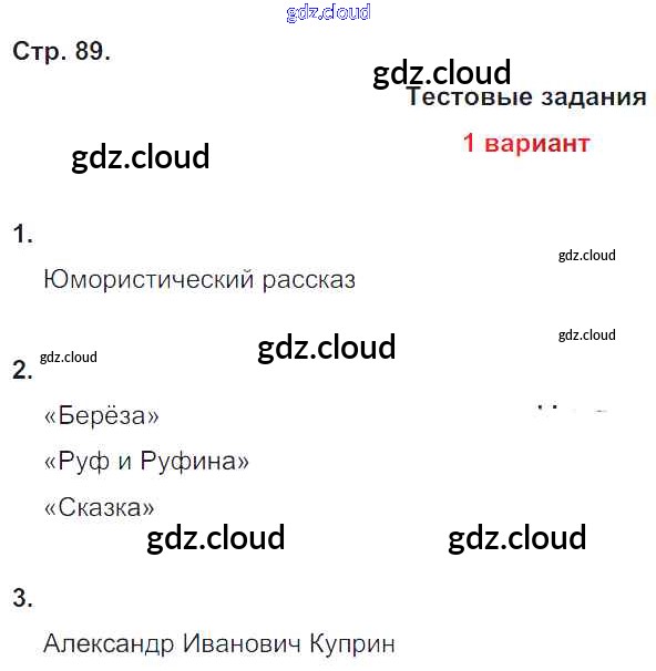 Ответ на задание стр.89 Тетрадь для контрольных работ Литература за 4 (четвертый) класс Ефросинина УМК 2019 Часть 1, 2