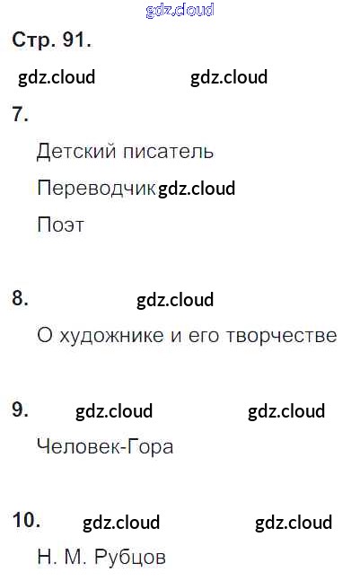 Ответ на задание стр.91 Тетрадь для контрольных работ Литература за 4 (четвертый) класс Ефросинина УМК 2019 Часть 1, 2