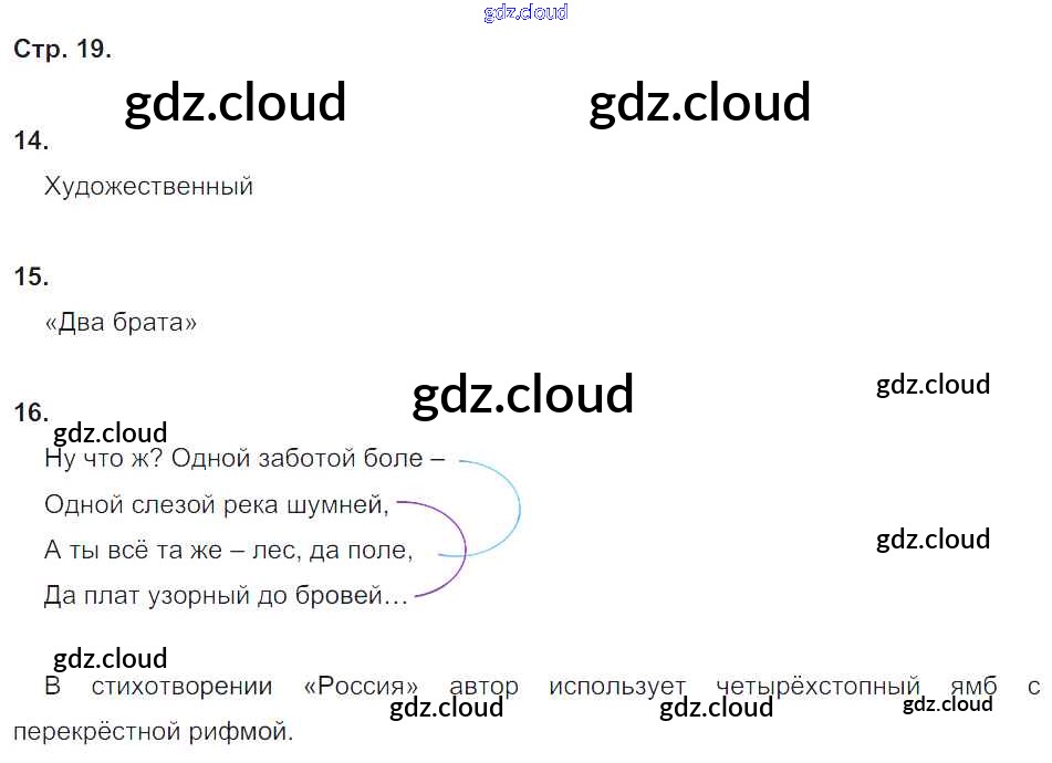 Ответ на задание стр.19 Тетрадь для контрольных работ Литература за 4 (четвертый) класс Ефросинина УМК 2019 Часть 1, 2