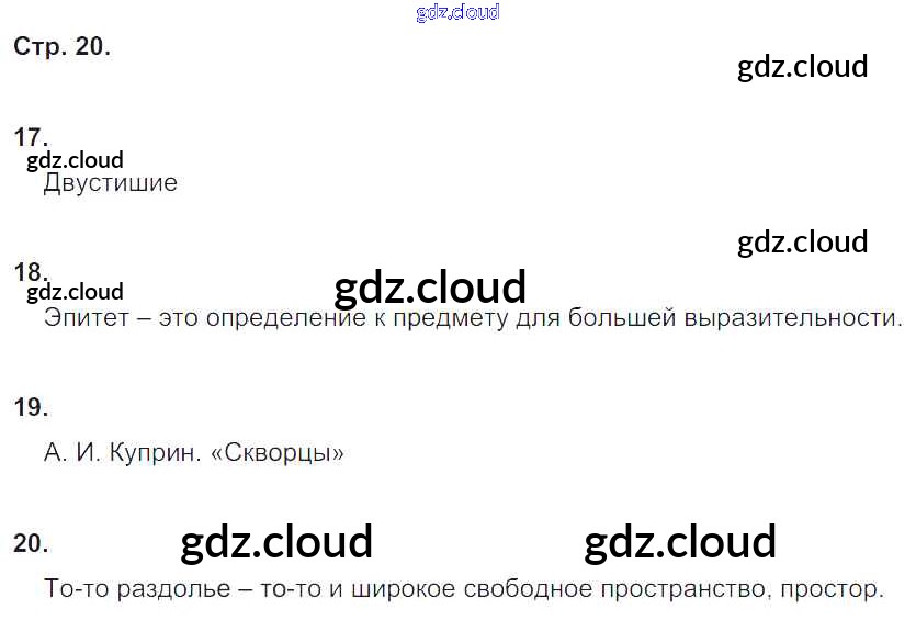 Ответ на задание стр.20 Тетрадь для контрольных работ Литература за 4 (четвертый) класс Ефросинина УМК 2019 Часть 1, 2