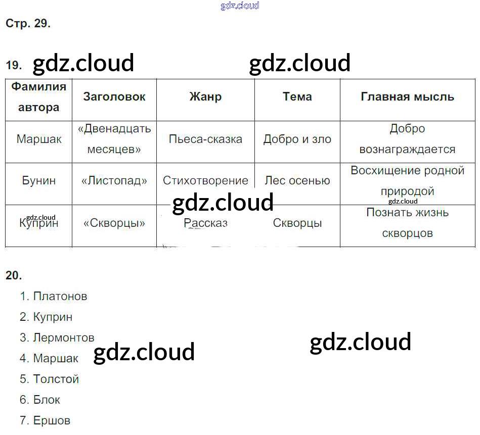 Ответ на задание стр.29 Тетрадь для контрольных работ Литература за 4 (четвертый) класс Ефросинина УМК 2019 Часть 1, 2