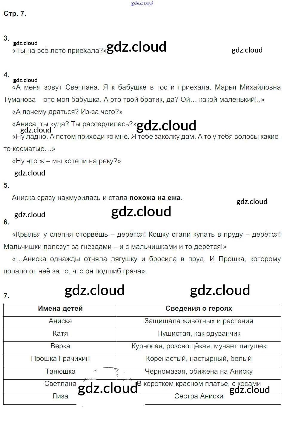Ответ на задание стр.7 Тетрадь для контрольных работ Литература за 4 (четвертый) класс Ефросинина УМК 2019 Часть 1, 2