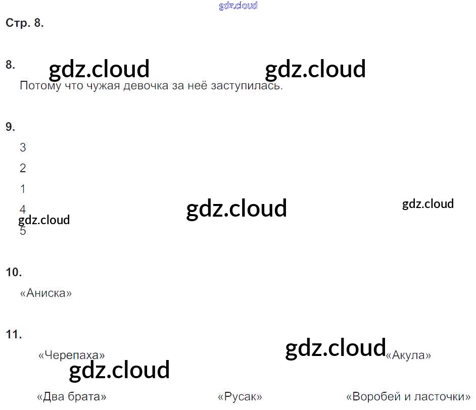 Ответ на задание стр.8 Тетрадь для контрольных работ Литература за 4 (четвертый) класс Ефросинина УМК 2019 Часть 1, 2