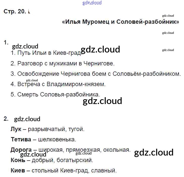 Ответ на задание 20 Рабочая тетрадь Литература за 4 (четвертый) класс Кац Планета знаний 2020 Часть 1 ФГОС онлайн и без номера телефона.
