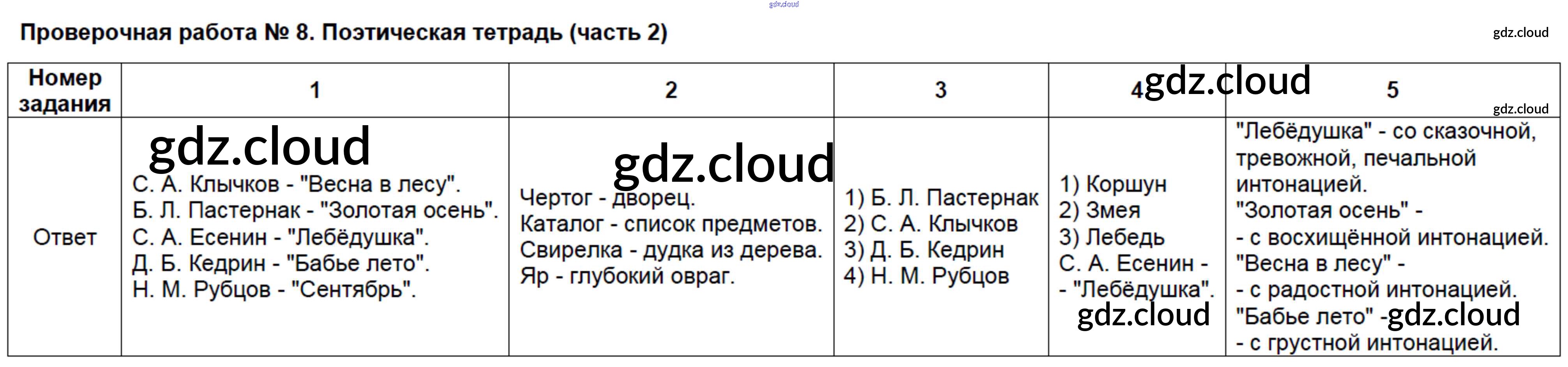 Ответ на задание ПР-8. Поэтическая тетрадь Контрольно-измерительные материалы (КИМ) Литература за 4 (четвертый) класс Шубина 2014