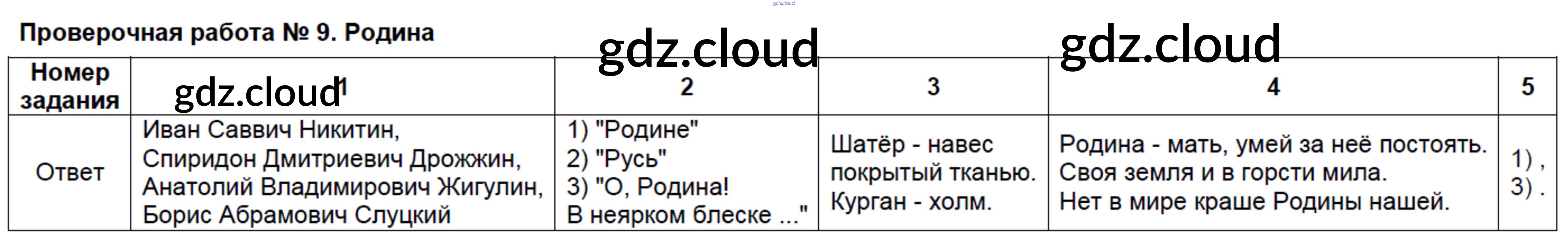 Ответ на задание ПР-9. Родина Контрольно-измерительные материалы (КИМ) Литература за 4 (четвертый) класс Шубина 2014