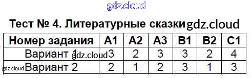 Ответ на задание Тест №4. Литературные сказки Контрольно-измерительные материалы (КИМ) Литература за 4 (четвертый) класс Шубина 2014