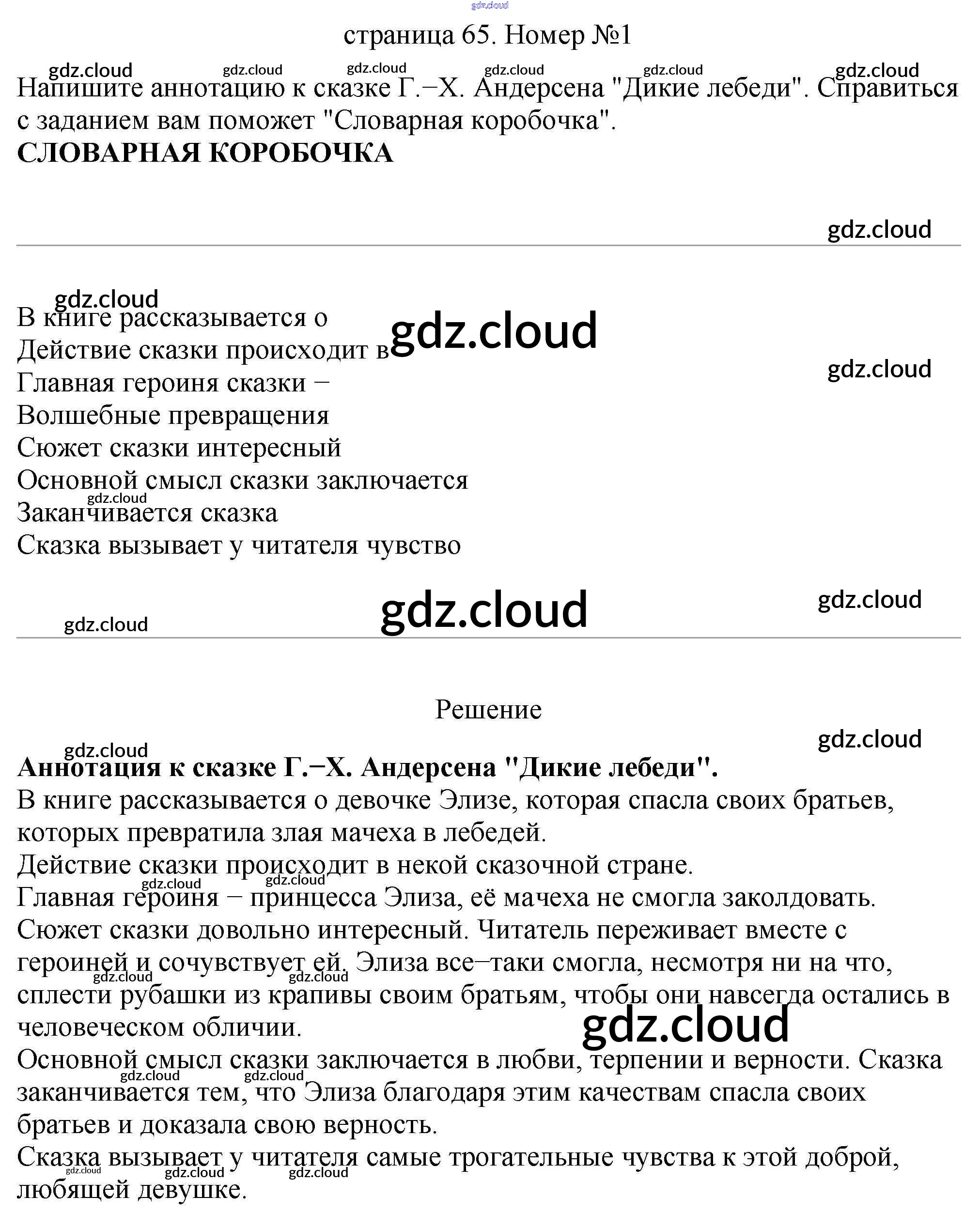 Ответ на задание 65 Творческая тетрадь Литература за 4 (четвертый) класс Коти Перспектива 2020 ФГОС онлайн и без номера телефона.