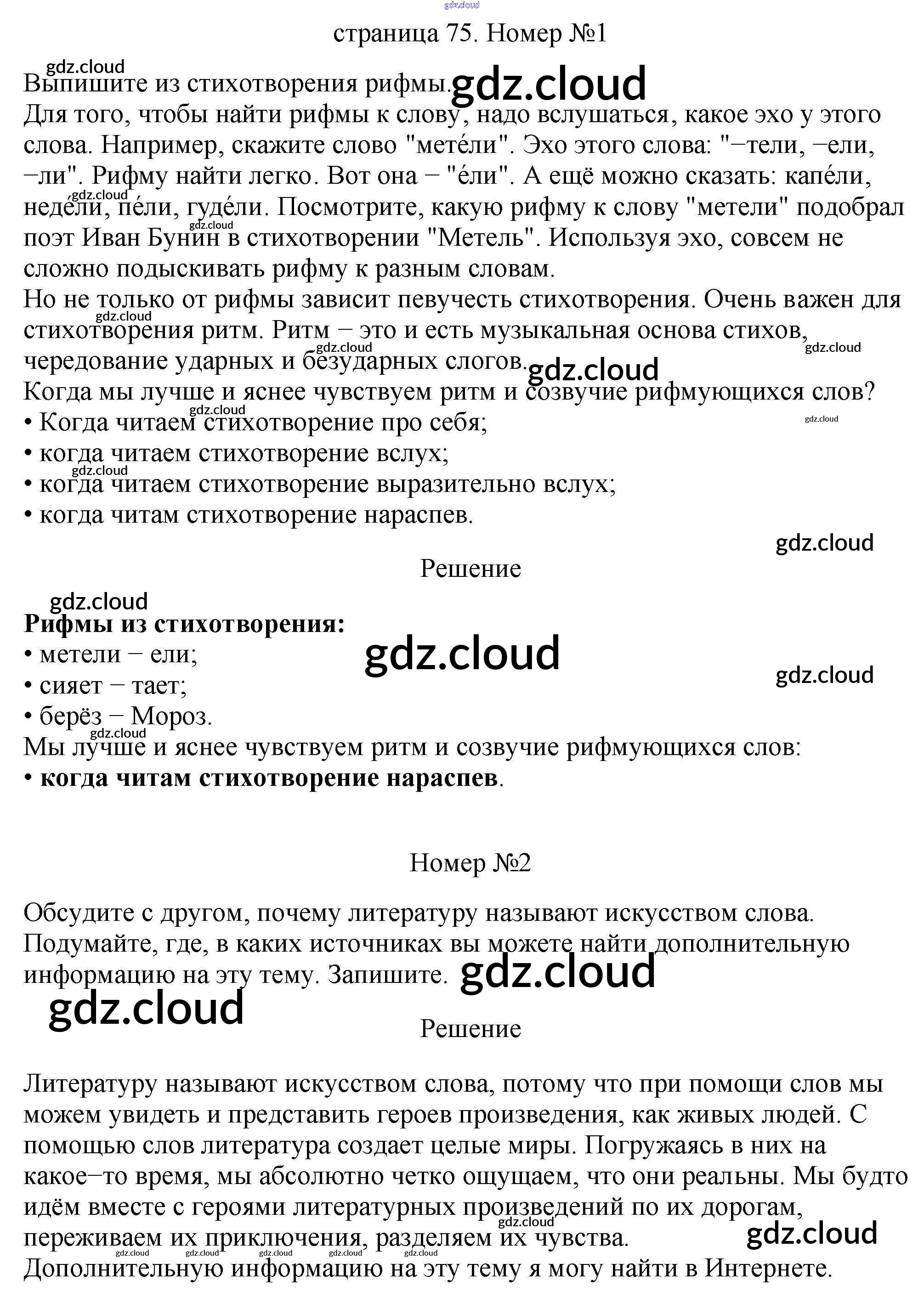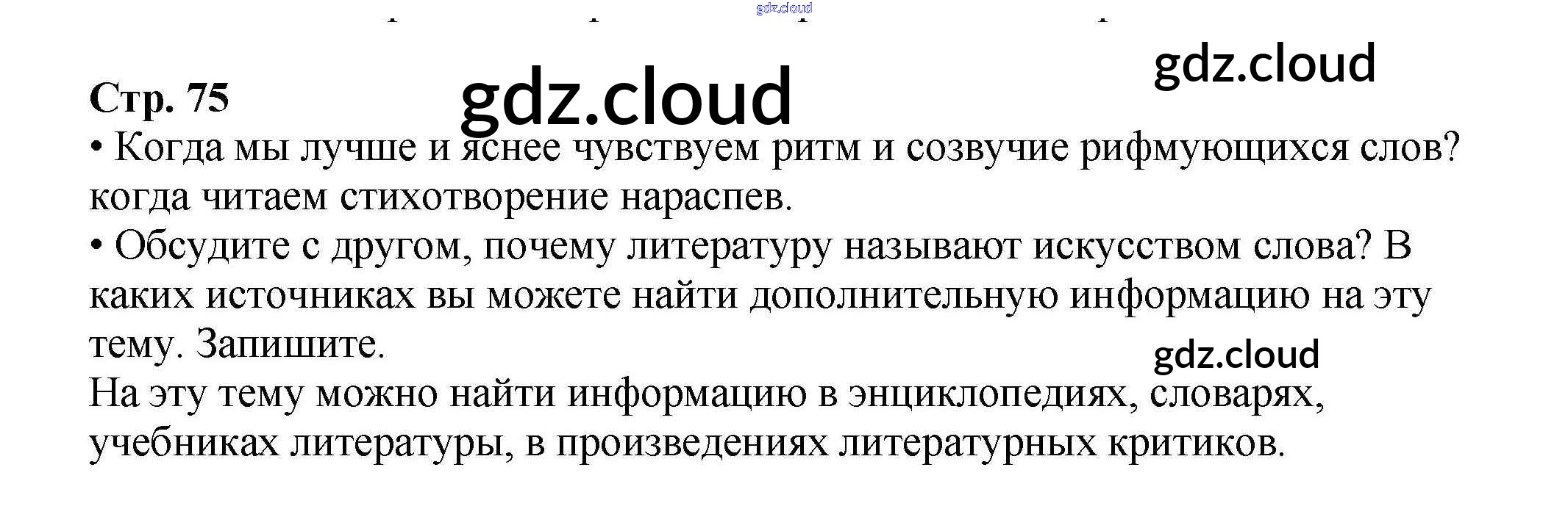 Ответ на задание 75 Творческая тетрадь Литература за 4 (четвертый) класс Коти Перспектива 2020