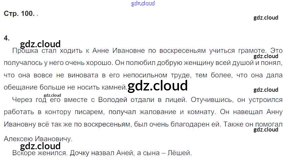 Ответ на задание стр.100 Рабочая тетрадь Литература за 4 (четвертый) класс Кубасова Гармония 2019 Часть 1, 2