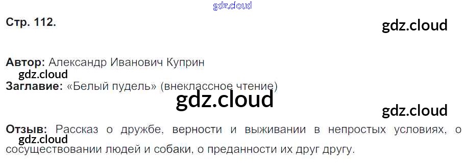 Ответ на задание стр.112 Рабочая тетрадь Литература за 4 (четвертый) класс Кубасова Гармония 2019 Часть 1, 2