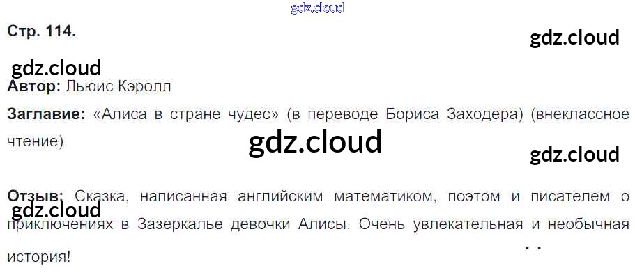 Ответ на задание стр.114 Рабочая тетрадь Литература за 4 (четвертый) класс Кубасова Гармония 2019 Часть 1, 2