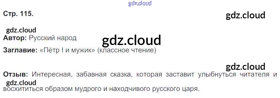 Ответ на задание стр.115 Рабочая тетрадь Литература за 4 (четвертый) класс Кубасова Гармония 2019 Часть 1, 2