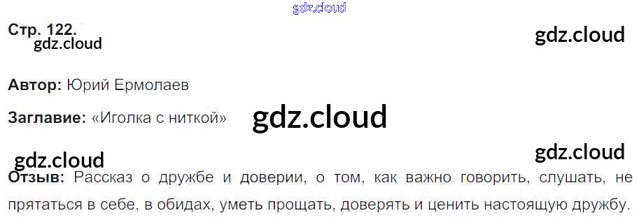 Ответ на задание стр.122 Рабочая тетрадь Литература за 4 (четвертый) класс Кубасова Гармония 2019 Часть 1, 2
