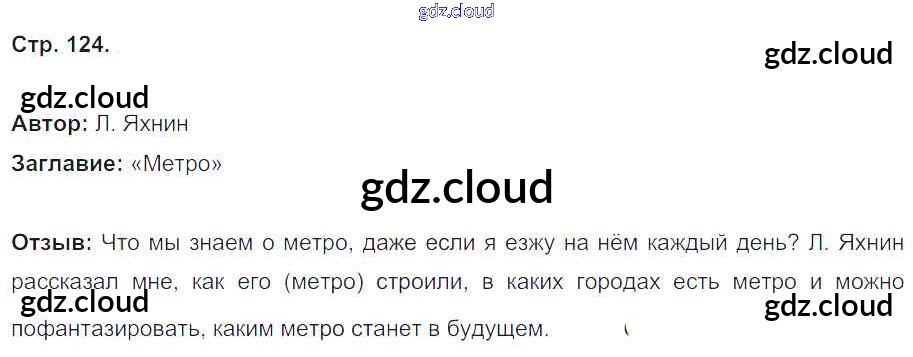 Ответ на задание стр.124 Рабочая тетрадь Литература за 4 (четвертый) класс Кубасова Гармония 2019 Часть 1, 2