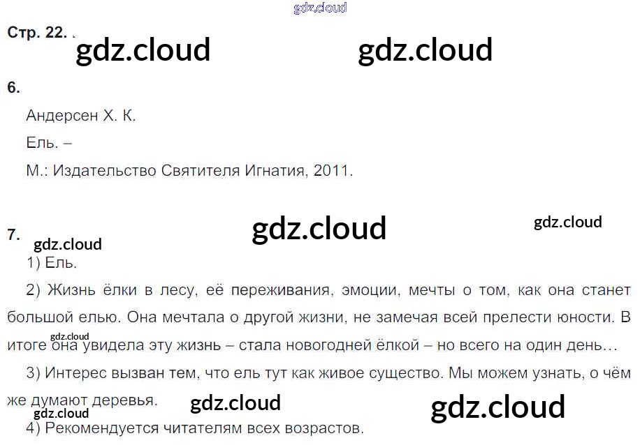 Ответ на задание стр.22 Рабочая тетрадь Литература за 4 (четвертый) класс Кубасова Гармония 2019 Часть 1, 2