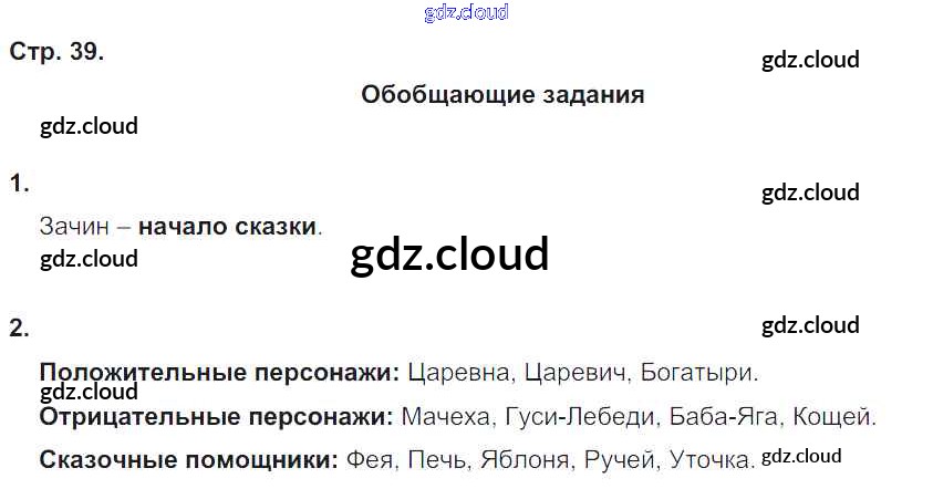 Ответ на задание стр.39 Рабочая тетрадь Литература за 4 (четвертый) класс Кубасова Гармония 2019 Часть 1, 2