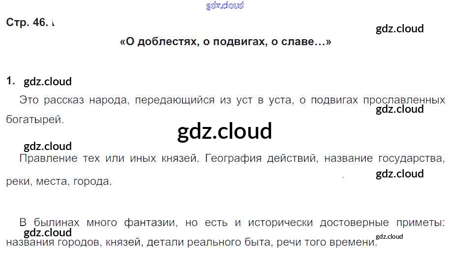 Ответ на задание стр.46 Рабочая тетрадь Литература за 4 (четвертый) класс Кубасова Гармония 2019 Часть 1, 2