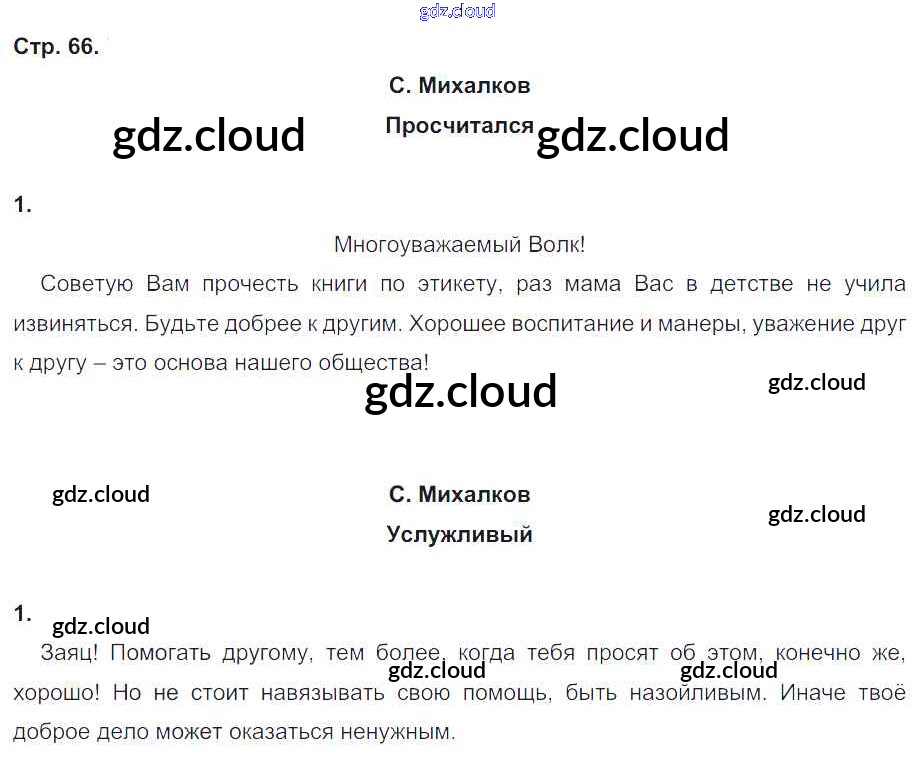 Ответ на задание стр.66 Рабочая тетрадь Литература за 4 (четвертый) класс Кубасова Гармония 2019 Часть 1, 2