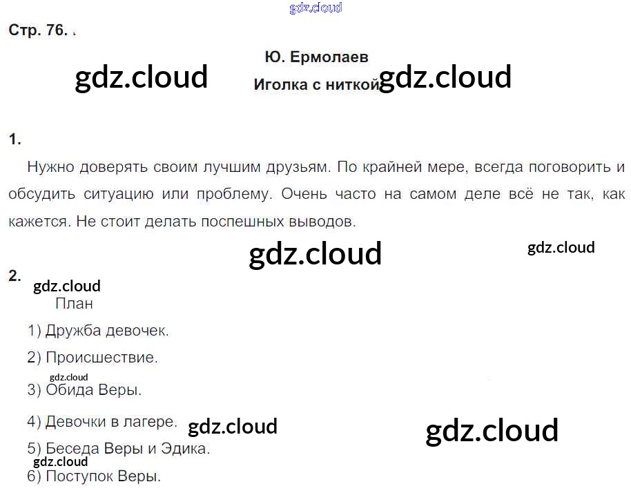Ответ на задание стр.76 Рабочая тетрадь Литература за 4 (четвертый) класс Кубасова Гармония 2019 Часть 1, 2