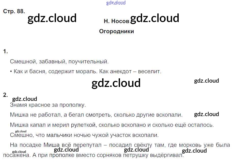 Ответ на задание стр.88 Рабочая тетрадь Литература за 4 (четвертый) класс Кубасова Гармония 2019 Часть 1, 2