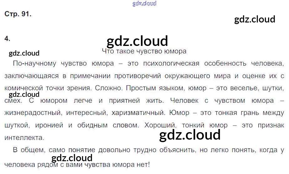 Ответ на задание стр.91 Рабочая тетрадь Литература за 4 (четвертый) класс Кубасова Гармония 2019 Часть 1, 2