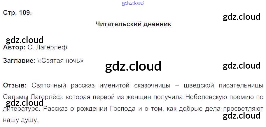 Ответ на задание стр.109 Рабочая тетрадь Литература за 4 (четвертый) класс Кубасова Гармония 2019 Часть 1, 2