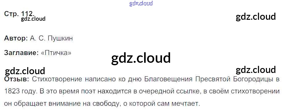Ответ на задание стр.112 Рабочая тетрадь Литература за 4 (четвертый) класс Кубасова Гармония 2019 Часть 1, 2