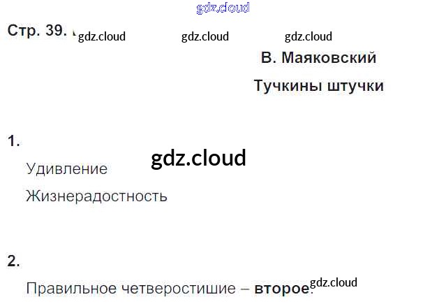 Ответ на задание стр.39 Рабочая тетрадь Литература за 4 (четвертый) класс Кубасова Гармония 2019 Часть 1, 2