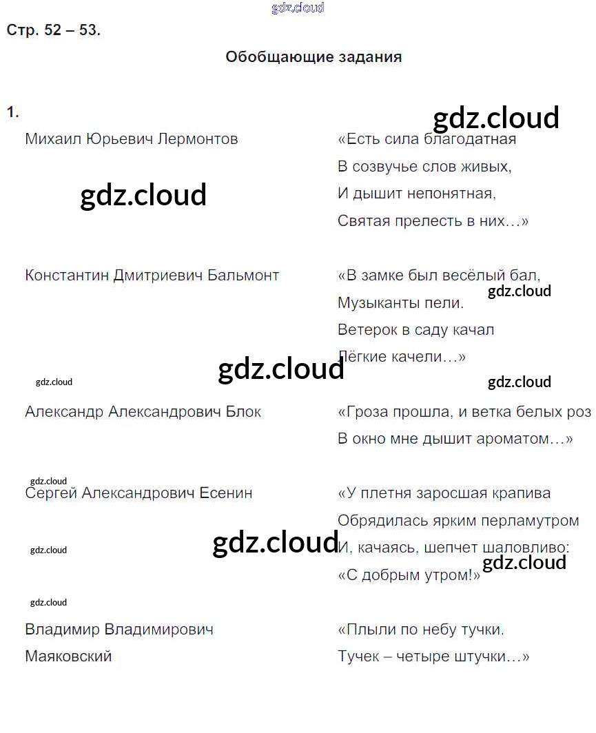 Ответ на задание стр.52 Рабочая тетрадь Литература за 4 (четвертый) класс Кубасова Гармония 2019 Часть 1, 2
