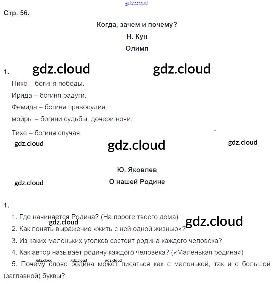 Ответ на задание стр.56 Рабочая тетрадь Литература за 4 (четвертый) класс Кубасова Гармония 2019 Часть 1, 2