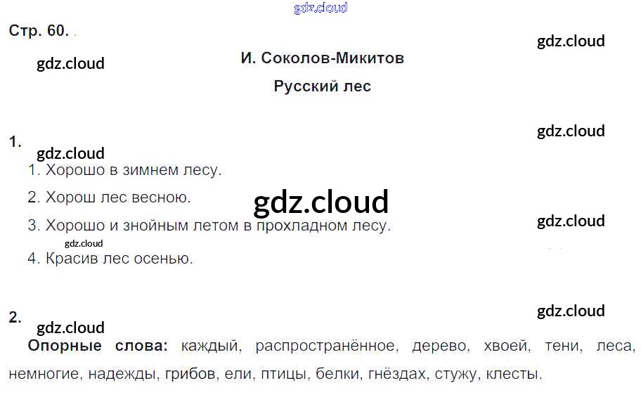 Ответ на задание стр.60 Рабочая тетрадь Литература за 4 (четвертый) класс Кубасова Гармония 2019 Часть 1, 2