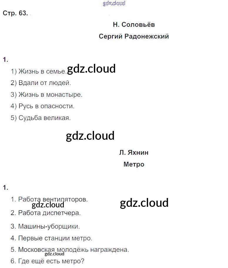 Ответ на задание стр.63 Рабочая тетрадь Литература за 4 (четвертый) класс Кубасова Гармония 2019 Часть 1, 2
