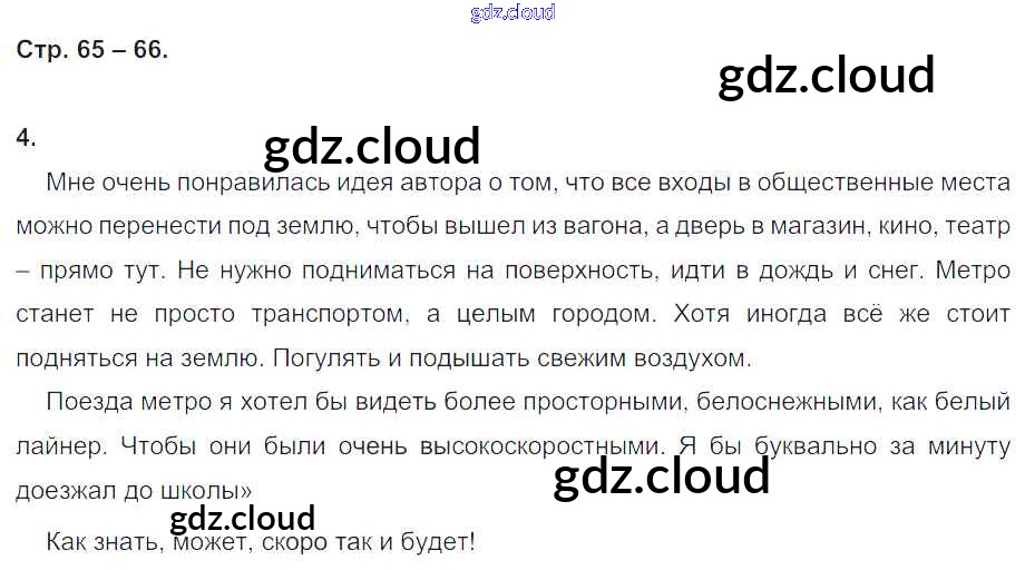 Ответ на задание стр.66 Рабочая тетрадь Литература за 4 (четвертый) класс Кубасова Гармония 2019 Часть 1, 2