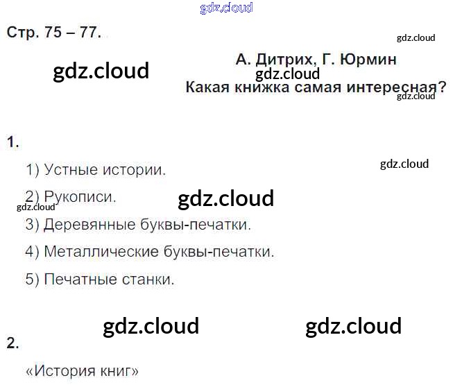 Ответ на задание стр.75 Рабочая тетрадь Литература за 4 (четвертый) класс Кубасова Гармония 2019 Часть 1, 2