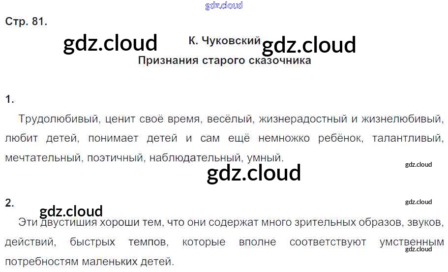 Ответ на задание стр.81 Рабочая тетрадь Литература за 4 (четвертый) класс Кубасова Гармония 2019 Часть 1, 2
