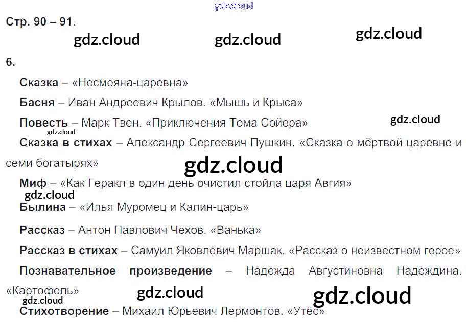 Ответ на задание стр.91 Рабочая тетрадь Литература за 4 (четвертый) класс Кубасова Гармония 2019 Часть 1, 2