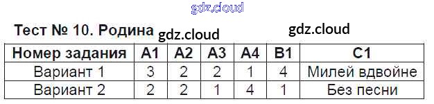 Ответ на задание Тест №10. Родина Контрольно-измерительные материалы (КИМ) Литература за 4 (четвертый) класс Кутявина 2017