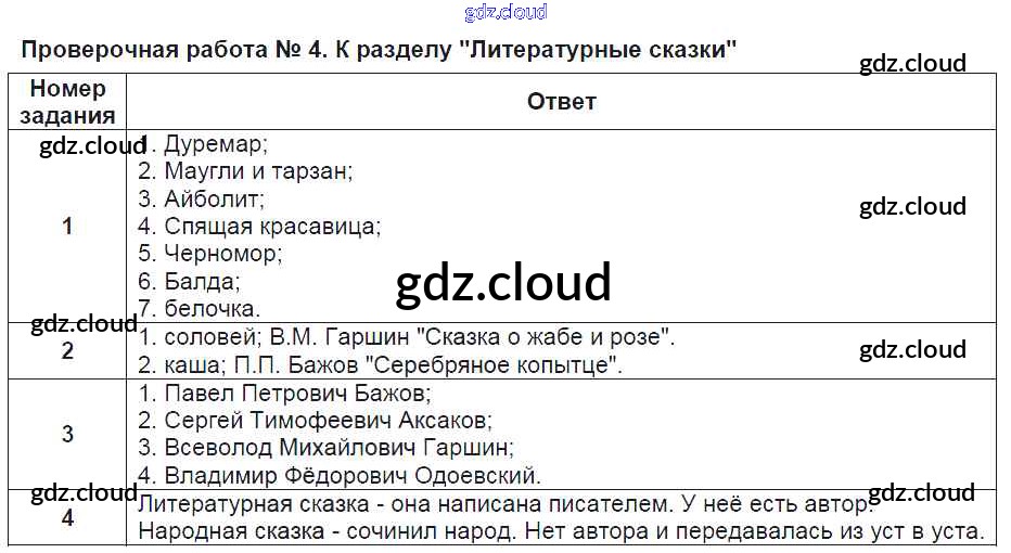 Ответы к Проверочным работам по Литературе 4 класс Контрольно-измерительные материалы (КИМ) Кутявина ВАКО