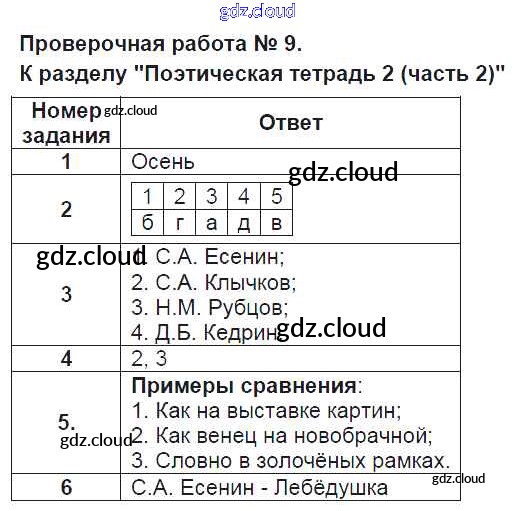 Ответ на задание ПР-9 Контрольно-измерительные материалы (КИМ) Литература за 4 (четвертый) класс Кутявина 2017